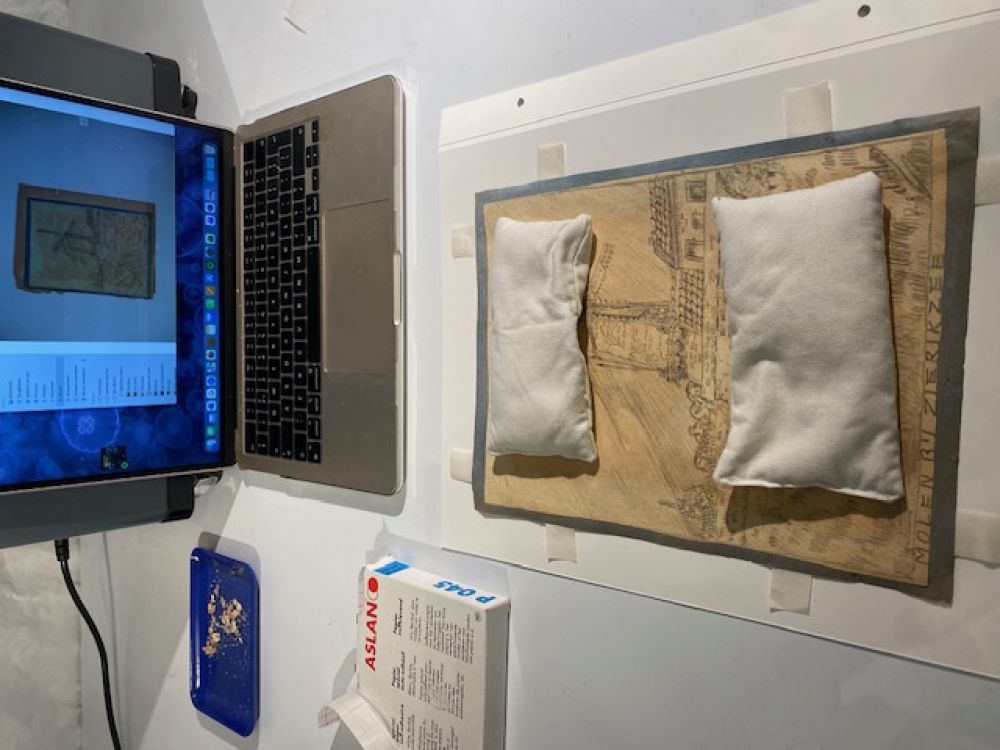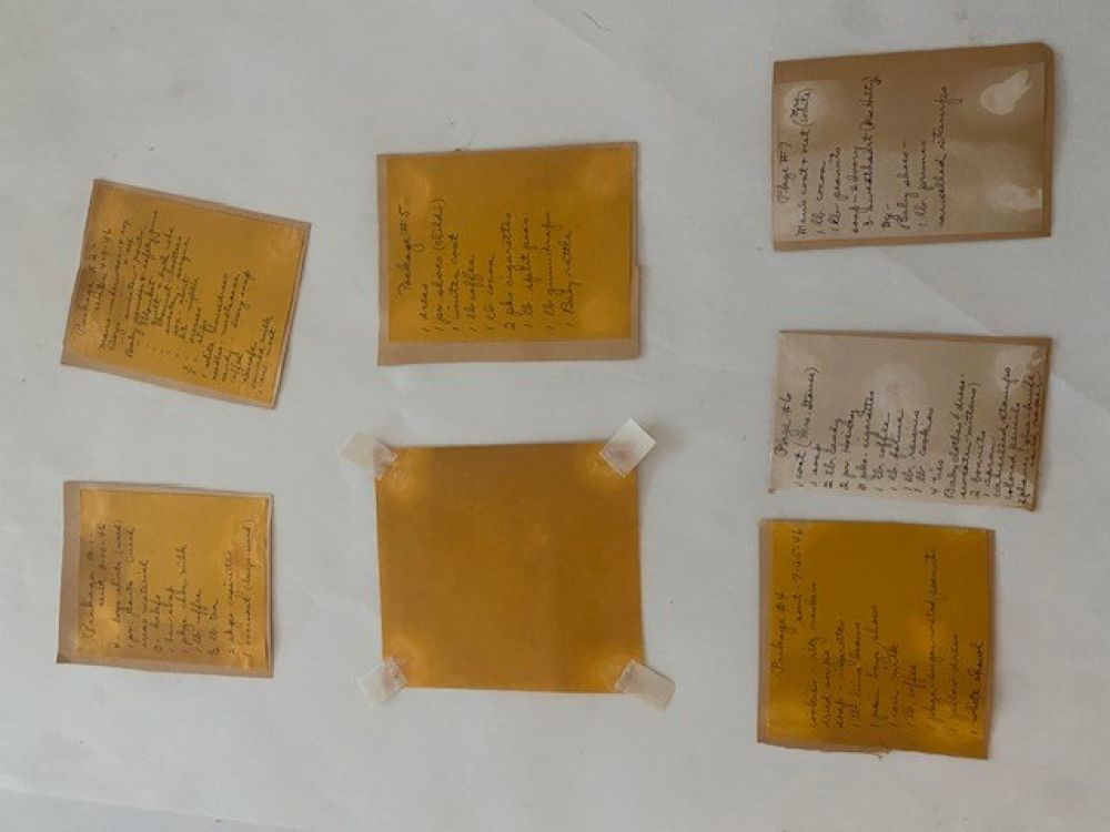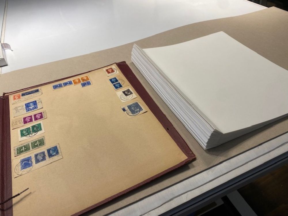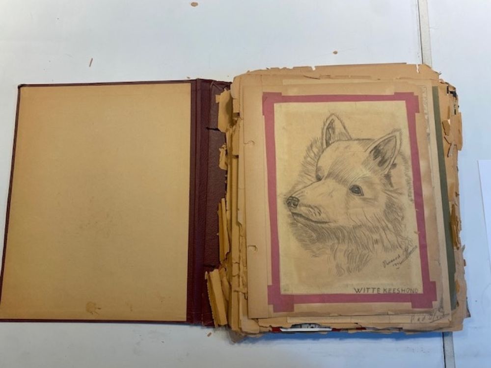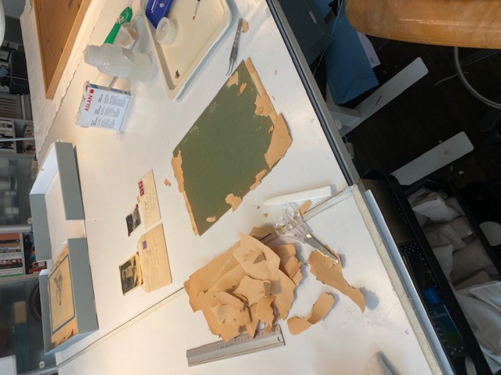 Een jas- een gift van een Amerikaanse familie aan een Nederlandse familie tijdens de hongerwinter- en een klein briefje met het adres van de gever in de jaszak- zo begon een uitvoerige correspondentie tussen een Amerikaanse en Nederlandse familie. De brieven, de ansichtkaarten en de foto’s, alles is zorgvuldig bewaard gebleven en in 2 scrap albums geplakt. De albumbladen waren helaas niet van een geweldige kwaliteit papier. Bij ieder raadpleging brokkelde het papier af. De vraag aan mij als restaurator was dan ook om alle documenten los te halen en in eenzelfde ordening op nieuwe zuurvrije bladen over te zetten. Een hele klus -met veel items op iedere kant van een blad, de broze brieven trapsgewijs- om deze zonder schade los te maken. Een mooie bijdrage als restaurator om een bijzondere familiegeschiedenis weer volledig toegankelijk te kunnen maken.